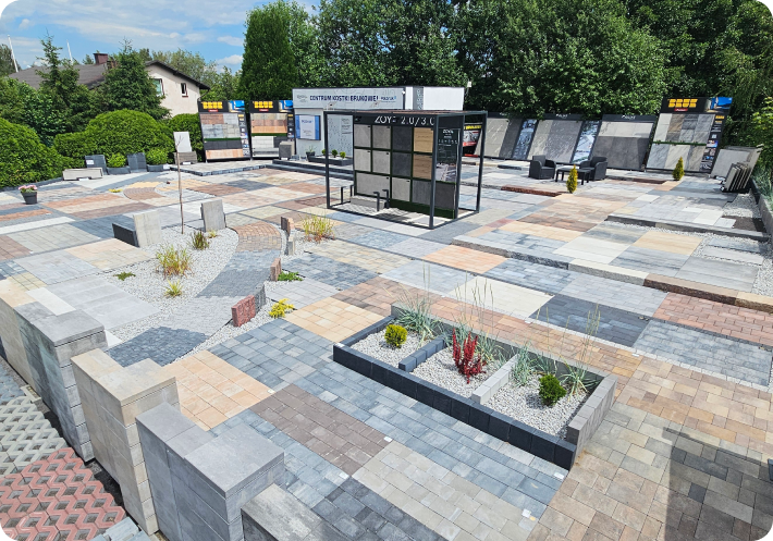 W roku 2023 został zbudowany i oddany użytku nasz kolejny Ogród Wystawowy z kostką brukową w Żorach przy ul. Kościuszki 73. Na powierzchni 750 m2 ułożone zostały przykładowe aranżacje z kostki brukowej, płyty tarasowej i galanterii betonowej. Uwagę zwracają na siebie aranżacje z ogrodzeń łupanych oraz pustaków gładkich. Całość kompozycji urozmaicają specjalnie przygotowane rabatki i oczka wypełnione szlachetnym kruszywem dekoracyjnym. Dostawcami prezentowanych rozwiązań są najwięksi i najbardziej renomowani producenci z branży, tacy jak: Polbruk, Bruk Lisów, Bruk-Bet, Drewbet, Kost-Bet oraz Zoya i Goliat Gres